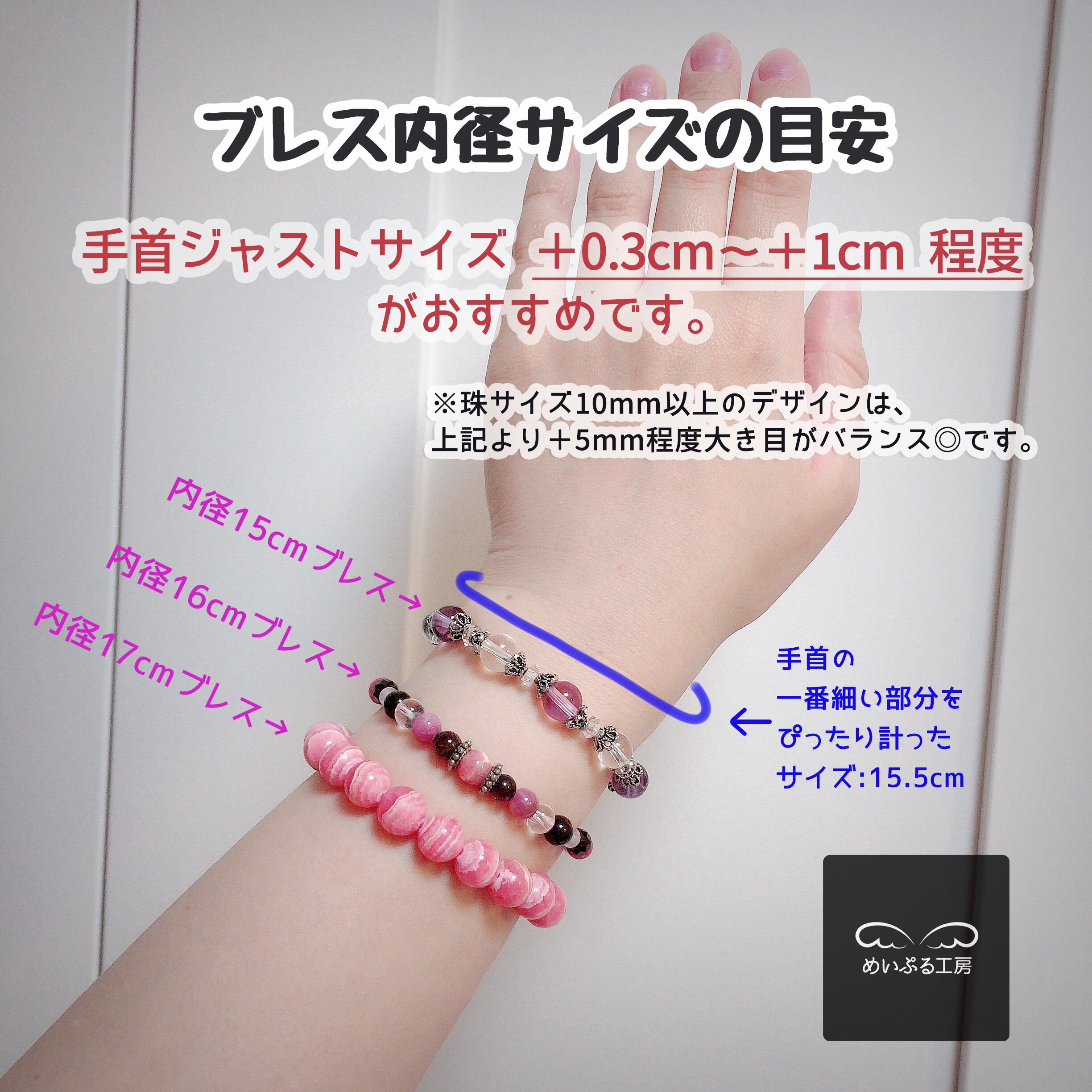 「チャーム土台の金具サイズ」「ラウンド水晶のサイズ」「ボタン水晶を足す・抜く」等で調整いたします。(お任せとなります)
