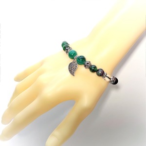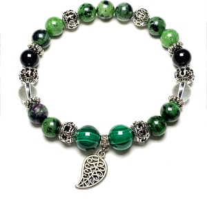 【1/31迄32%OFF】高品質マラカイト使用♪魔除けと心身のヒーリング・リーフモチーフブレス♪ルビーインゾイサイト/オニキス/[B-0133]