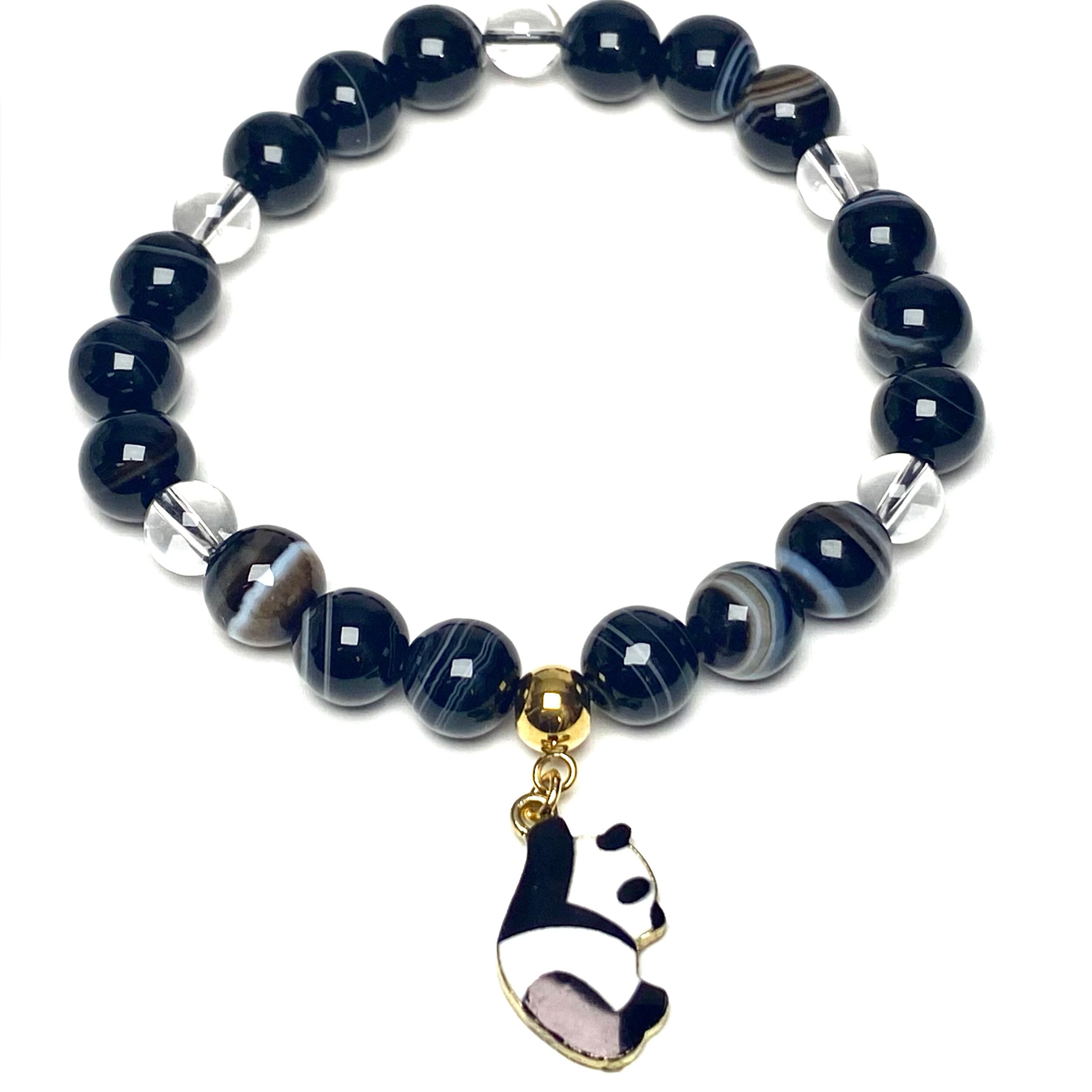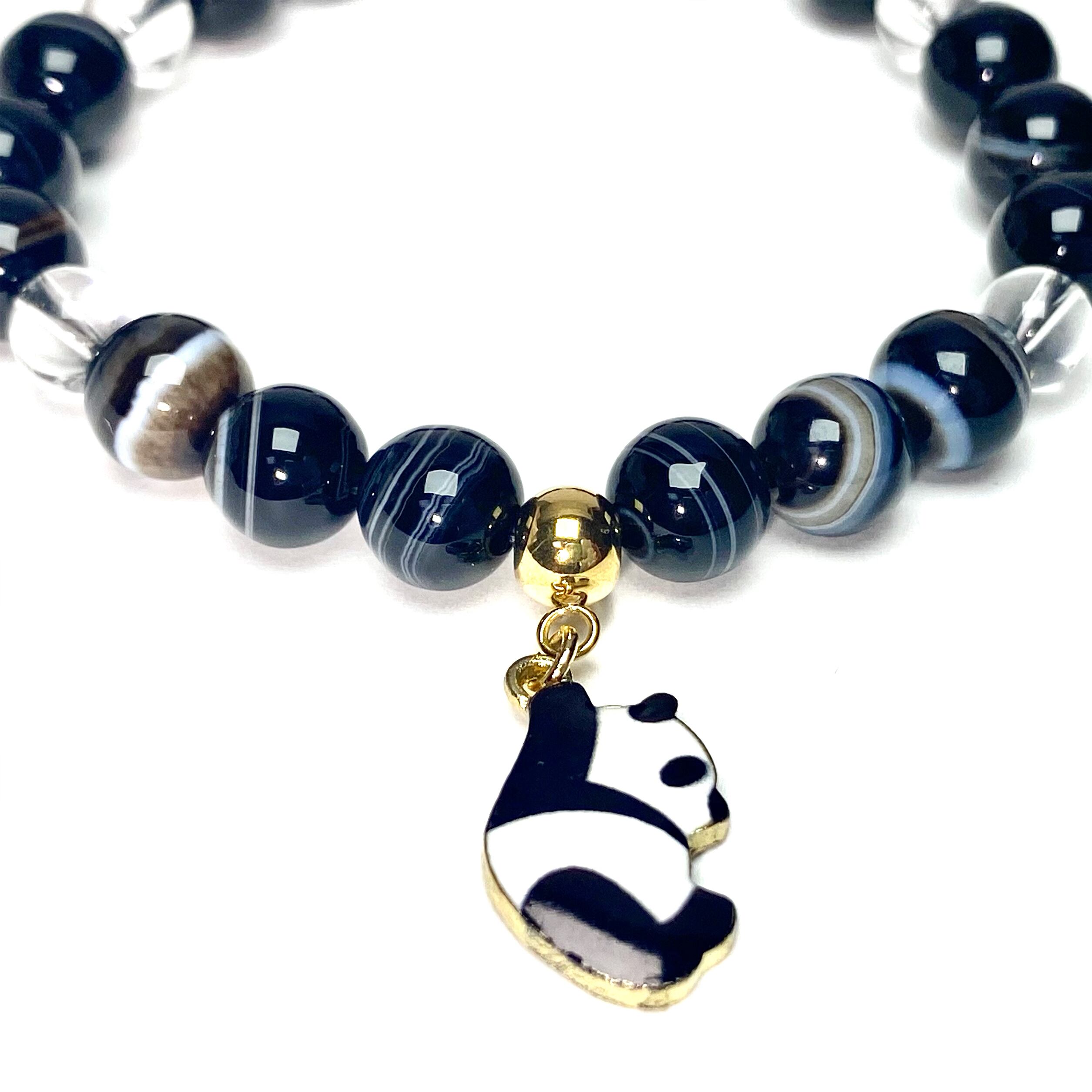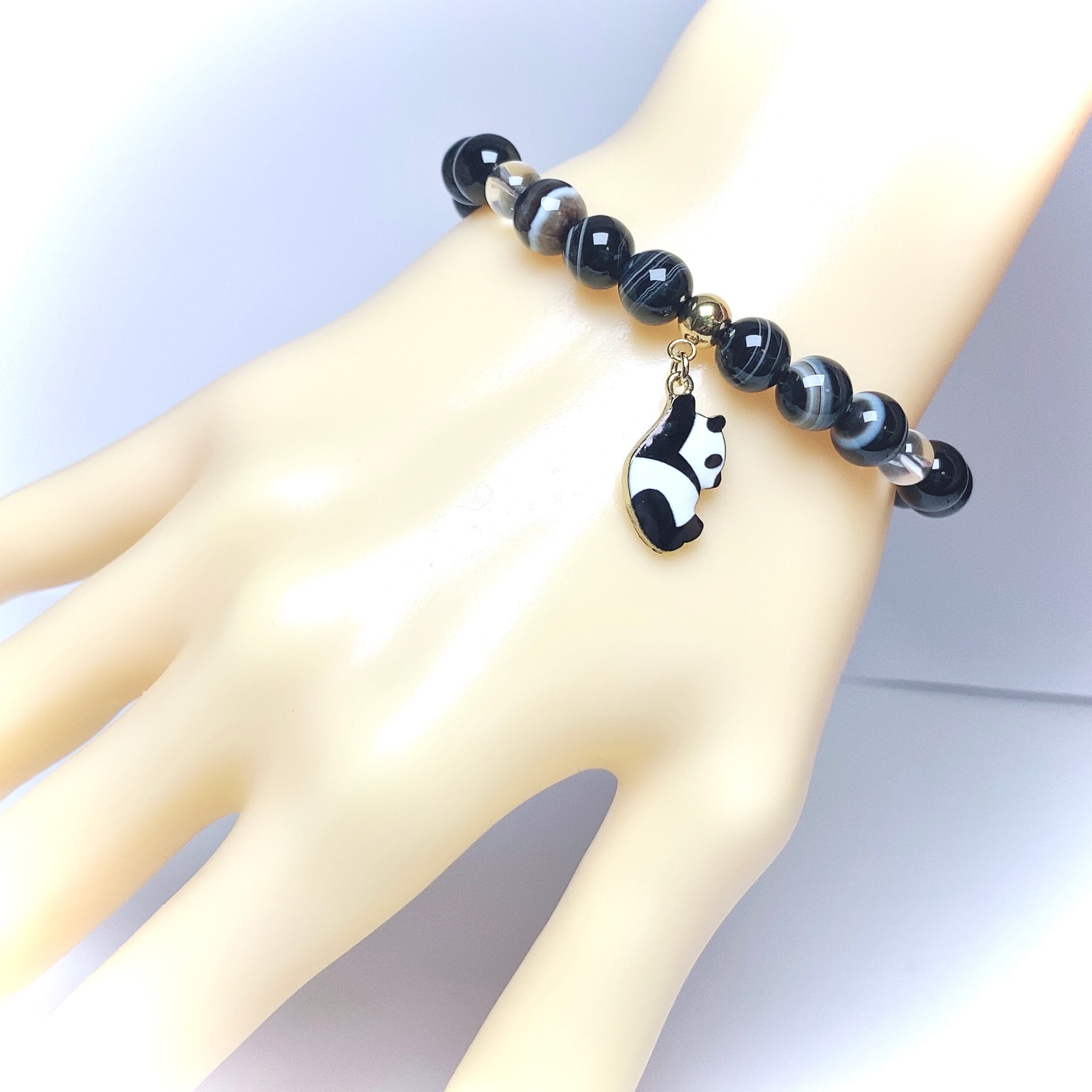 魔除け/仕事運◎ストライプオニキスのパンダブレス♪[B-0152]